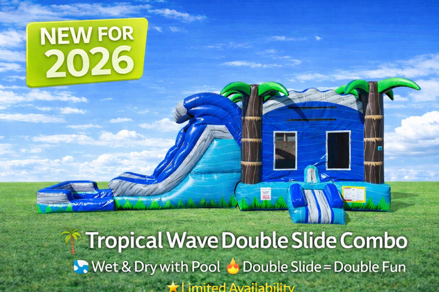 🌴 Tropical Wave Double Slide Combo💦 Wet & Dry with Pool